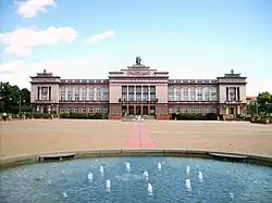 The population of Ostrov then multiplied as people were moved to work in the uranium mines in nearby Jáchymov.[3] The extensive housing blocks from the 1950s forming the new part of Ostrov are considered one of the best examples of socialist realism architecture in the Czech Republic.[6]