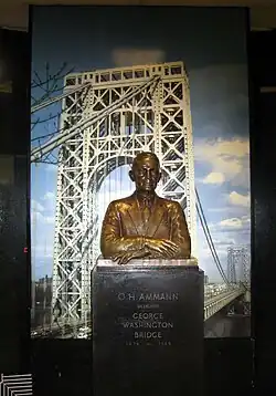 In 1962, a bronze bust of Ammann was unveiled in the lobby of the George Washington Bridge Bus Station.[1][10] A residence hall called Ammann College was dedicated in his honor on February 18, 1968 on the campus of Stony Brook University.[11] To mark the hundredth anniversary of his birth, a memorial plaque for Ammann was placed near the Verrazzano Narrows Bridge on June 28, 1979.[12]