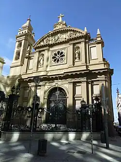 The church was originally designed by Italian architects Giovanni Andrea Bianchi and Giovanni Battista Primoli, who started the construction works around 1721.[3] The current façade is the work of the architect Mario Buschiazzo, who completed the remodeling in 1900.[4]