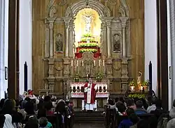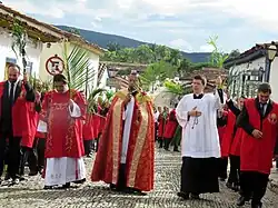 In Pirenópolis, the manifestations of the religious traditions of Holy Week have been held since the 18th century, funded by brotherhoods, such as the Blessed Sacrament, and housed exclusively in parish churches.[7][21] The rites of the celebration of the Passion of Christ, liturgical and paraliturgical acts, constitute an exceptional cultural moment, of emotional and affective value to the people of the place, and has been conceived since its origin and was the celebration of greatest local expression; it is the period when most celebrations were held.[21][42]