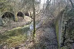 The Fort de Boussois, also known as the Fort de Kilmaine, was built between 1881 and 1883 as part of the Séré de Rivières system of fortifications. It overlooks the valley of the Sambre. The pentagonal fort is surrounded by a ditch defended by caponiers and counterscarps. The fort featured a Mougin turret with two 155 mm guns. A cavalier, or elevated surface for artillery, surmounts the reinforced barracks. Underground galleries link the salients, caponiers and counterscarps to the central portions of the fort.[1]