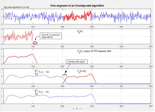 In signal processing, the overlap–add method is an efficient way to evaluate the discrete convolution of a very long signal with a finite impulse response (FIR) filter :