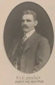 Sinclair had a long and prominent involvement in community and sporting roles in the Port Melbourne area. He served on Port Melbourne City Council from 1906 until his death, but reportedly declined the mayoralty as it came with an expectation of appointment as justice of the peace, and Sinclair did not wish to pass sentence on people. He was also a commissioner of the Melbourne Harbour Trust and member of the Melbourne Tramway Trust, chairman of Nott Street State School committee, and captain of the local fire brigade for many years, in which capacity he was seriously burned in an 1885 explosion at the Forresters Arms Hotel. Sinclair was also a keen sportsman, being a successful cricketer and footballer at local level, founder and trustee of the Port Melbourne Swimming Club, and for 17 years was a delegate of the Port Melbourne Football Club to the Victorian Football Association, becoming a life member of the Association.[5][6][7][8]