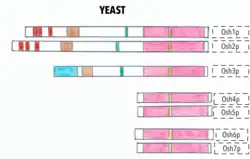 In yeast (Saccharomyces cerevisiæ) we can find 7 ORP genes called OSH1-7, but they have some additional names as well.[30][31]