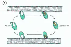 The oxysterol-binding protein (OSBP)-related proteins (ORPs) are a family of lipid transfer proteins (LTPs). Concretely, they constitute a family of sterol and phosphoinositide binding and transfer proteins in eukaryotes[2] that are conserved from yeast to humans. They are lipid-binding proteins implicated in many cellular processes related with oxysterol, including signaling, vesicular trafficking, lipid metabolism, and nonvesicular sterol transport.