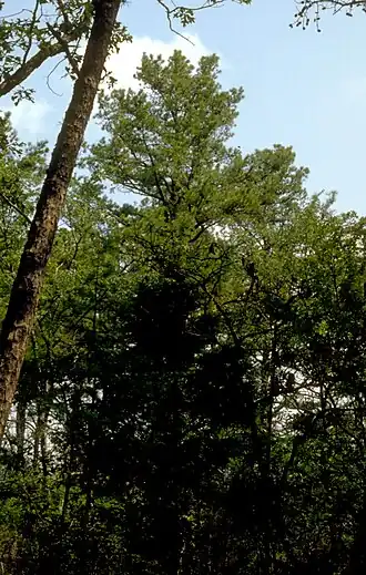 The Forest contains 11,000 acres (45 km2) of old-growth forests. The old-growth forests typically occur in the southern portion of the Forest on ridges and steep south-facing slopes and are dominated by Shortleaf Pine and various oaks, including Post Oak, Blackjack Oak, Eastern Black Oak, White Oak, and Northern Red Oak.[1] The Forest is also home to six different endangered species.