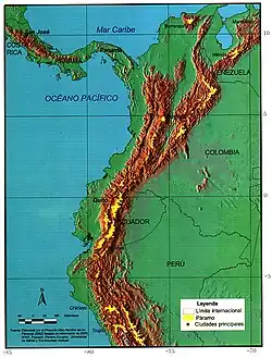 In Venezuela, the páramo occurs in the Cordillera de Mérida. Páramo ecosystems are also found in the Sierra Nevada de Santa Marta in Colombia, and in the regions of Huehuetenango and El Quiché of Guatemala in the Sierra de los Cuchumatanes.[6] The Cordillera de Talamanca of Costa Rica and the westernmost part of Panama has páramo. In northern Ecuador, the Guandera Biological Station is a fairly undisturbed páramo ecosystem.