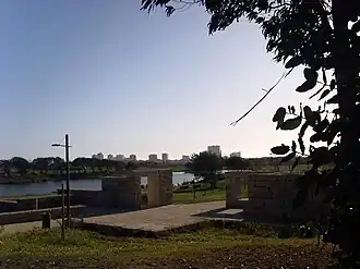 The West development area of the city park relies upon the recovery of Lagoa da Pedreira, the expansion of Avenida 25 de Abril crossing the park in a trench, and a bikeway from the park to nearby Lagoa Beach.