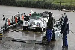 The hand-operated, rope-guided punt-type ferry can transport up to three cars and about 30 foot passengers.[3] Its operating season is from May to early October and Wednesday to Sunday.[2] Today, the pünte is relatively strongly aimed at the tourist trade. The pünte season traditionally begins on 1 May and is celebrated a bit like a folk festival.