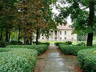 Pławowice [pwavɔˈvit͡sɛ] is a hamlet lying within the Voivodeship of Małopolska and the County of Proszowice.[1] The river Szreniawa runs alongside Pławowice and its municipal capital of Nowe Brzesko is found 5 km away in the direction of Kraków. At present its population stands at 270 persons. While relatively small and numbering few houses the hamlet boasts a 19th-century palace. The Palace of Pławowice or ‘Pałac Pławowice’ dates back to 1805 and contains within its boundaries a 15ha landscaped park and lake complex as well as its own chapel where mass is held to this day.