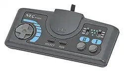 Power Console (PI-PD7)[8] was an unreleased cockpit-sized controller that attaches onto the SuperGrafx unit itself, connecting via the expansion port on the front side. The peripheral would have added numerous control options such as an eight-way joystick, four action buttons, a flight yoke with two triggers (one on each handle), a throttle lever, a jog dial, three mode switches, an LCD panel, an LED indicator, four additional controller ports and a numerical keypad. The Power Console was scheduled to be released in Spring 1990 with a suggested retail price of 59,800 yen, but was never released due to its high production cost and the poor sales of the SuperGrafx itself.[9][10]