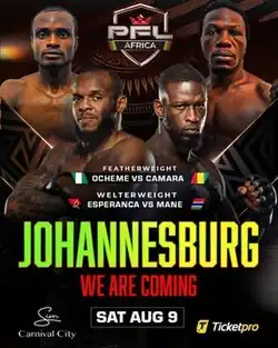 - ^ Anderson, Jay (2025-06-10). "Second PFL Africa Event Set for Johannesburg on August 9". Cageside Press. Retrieved 2025-06-10.