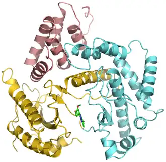 - ^ Burke JE, Inglis AJ, Perisic O, Masson GR, McLaughlin SH, Rutaganira F, Shokat KM, Williams RL (May 2014). "Structures of PI4KIIIβ complexes show simultaneous recruitment of Rab11 and its effectors". Science. 344 (6187): 1035–8. Bibcode:2014Sci...344.1035B. doi:10.1126/science.1253397. PMC 4046302. PMID 24876499.