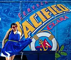 It was first brewed in 1900 when three Germans, Jorge Claussen, Germán Evers and Emilio Radostits opened a brewery,[1] the Cerveceria del Pacífico, in Mazatlán.[2] Its label includes a picture depicting a lifesaver encircling a ship's anchor superimposed over the port's lighthouse hill, known locally as "Cerro del Crestón."[3] In Mazatlán, the beer is available in three different size bottles: "cuartitos" (180 ml; 6 US fl oz), "medias" (350 ml; 12 US fl oz), and "ballenas" (950 ml; 32 US fl oz).[3]