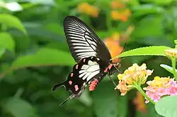 Pachliopta pandiyana, the Malabar rose or pandiyana's maculaturoviy machaon with white stripes ,[3] is a swallowtail butterfly belonging to the genus Pachliopta, the roses or red-bodied swallowtails.[3][4][5]