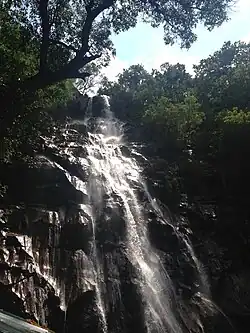 Also called Rajat Prapat/Big Fall. The falls drop over 2800 feet through the gorge, leaving a silver streak behind that gives its name .