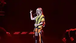 Minogue performed "Padam Padam" for the first time at American Idol in May 2023, alongside "Can't Get You Out of My Head" with Nutsa, one of the show's contestants.[129] The next month, she surprised everyone by performing the same songs at Capital's Summertime Ball.[130] She performed "Padam Padam" as part of her nine-track set at the iHeartMedia KTUphoria 2023 live show.[131] She also performed parts of the song during an interview on Andy Cohen's Sirius XM radio show as part of the single's American promotion, singing and impersonating Siri.[132][133] She performed "Padam Padam" twice at the Horse Meat Disco in June 2023 due to technical issues with the first performance.[134] A week before the album's release, Minogue and Tears for Fears co-headlined Radio 2 in the Park in Leicester's Victoria Park. She headlined the festival's second and final night with performances of "Padam Padam", "Tension" and "Hold On to Now."[135] Kylie attended the 2023 London Fashion Week launch at Lio London, where she performed several album tracks, including "Padam Padam" and "Tension".[136] On 27 September 2023, Minogue gave a free, limited-time concert at the O2 Shepherd's Bush Empire, performing "Padam Padam" and other songs from her set.[137][138]