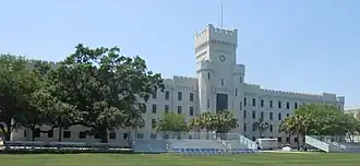 Padgett-Thomas Barracks is the dominant building on the campus of The Citadel in Charleston, South Carolina. Constructed from 1920 to 1922 as the first building on The Citadel's new site but demolished and replaced from 2000 to 2004, the barracks serves as the living quarters for up to 560 members of the South Carolina Corps of Cadets. The eight-story tower which distinguishes it from the other four, smaller, barracks on Campus of The Citadel is also styled as a brand mark of the military college.[1][2][3][4]
