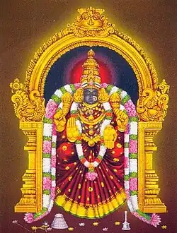 Padmavati (Sanskrit: पद्मावती, lit. 'she of the lotus'), also known as Alarmel Mangai (Tamil: அலர்மேல் மங்கை, lit. 'Goddess at top of Lotus')[1][2] or Alamelu Manga[3][4][5] is a Hindu goddess and the consort of the deity Venkateshwara, a form of Vishnu. She is described as a daughter of a local king and an avatar of goddess Lakshmi, the consort of Vishnu.[3][6]