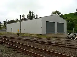 Several facilities have been retained or added at the site, both original and more modern. The 1971 station building remains, as does the original goods shed. The railcar society has erected its own buildings to support its various functions, including a Railcar Storage Shed and Workshop (2001), and a Rolling Stock Storage Shelter (June 2002).[7] As well as the mainline, there are two loops and several sidings serving the railcar shed, goods shed and rolling stock storage shelter.