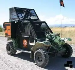 ATV-based tanks are ATVs fitted with weapons and protective coverings. The level of involvement varies here as well; some are simply quads or similar fitted with a removable netting cage, others feature scratch-built bodies and turrets and are capable of housing several players and their equipment. All-terrain vehicles, Golf carts, riding mowers and amphibious ATVs are the most popular bases for ATV tanks, thanks to ready availability, off-road ability and low price.