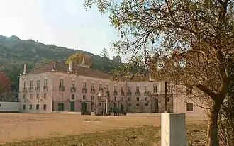 There are records showing the existence of residences in this location, since the 16th century, and that at the end of the century, the family of Gomes de Elvas rented the Quinta da Mata from the monastery of Odivelas.[1] A Jewish family, uncommon for the time, in 1606 King Philip III of Spain bestowed Luís Gomes de Elvas Coronel a noble title, in gratitude for his services to the Crown (during the Iberian Union). At the same time, the monarch altered his surname to in conformity to New Christian requirements, to Gomes da Mata.[1][2][3] Simultaneously, he conferred on the nobleman the title of High-Courier (or Postmaster General), which consolidated his importance to the Kingdom's commercial or financial sectors. In this epoch, the buildings of the estate, corresponding to the southern wing were simple structures, until the beginning of the 18th century.[4]
