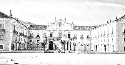 An oblique image of the Palace of the Postmaster General of Portugal, showing entrance gate and southern wing | |