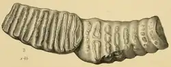 Palaeoloxodon creutzburgi is an extinct species of elephant known from fossil found on the island Crete. It is a descendant of the large mainland straight-tusked elephant (Palaeoloxodon antiquus). It is known from localities across the island,[3] though known material is fragmentary.[4] P. chaniensis from Stylos and in Vamos cave, Chania, west Crete[1][5][6] is considered to be a junior synonym of P. creutzburgi. It had undergone insular dwarfism, being approximately 40% of the size of its mainland ancestor, and was around the size of the living Asian elephant,[3] with an estimated body mass of around 3,000 kilograms (6,600 lb).[4] Like its ancestor, it was probably a generalist feeder.[3] It lived during the Middle-Late Pleistocene,[3] alongside the radiation of Candiacervus deer endemic to the island, the mouse Mus batae-minotaurus, the Cretan otter, and the Cretan shrew.[7] Like other Pleistocene animals on Crete, its chronology is poorly constrained, though one specimen has been suggested to date to around 50,000 years ago based on amino acid racemization dating.[4]