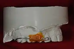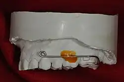 A palatal lift prosthesis is a prosthesis that addresses a condition referred to as palatopharyngeal incompetence. Palatopharyngeal incompetence broadly refers to a muscular inability to sufficiently close the port between the nasopharynx and oropharynx during speech and/or swallowing. An inability to adequately close the palatopharyngeal port during speech results in hypernasalance that, depending upon its severity, can render speakers difficult to understand or unintelligible.[1] The potential for compromised intelligibility secondary to hypernasalance is underscored when consideration is given to the fact that only three English language phonemes – /m/, /n/, and /ng/ – are pronounced with an open palatopharyngeal port.[2] Furthermore, an impaired ability to effect a closure of the palatopharyngeal port while swallowing can result in the nasopharyngeal regurgitation of liquid or solid boluses.