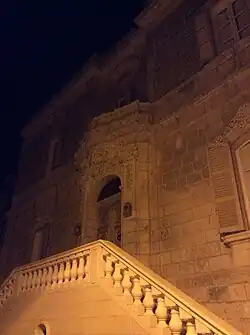 It is found next to the house of the Naxxar parish priest. Naxxar is a village on a hill,[4] while at the same time the palace is elevated from the street. It is built on two floor with a large underlying shelter.[2][3] It originally looked over the three villages.[5]