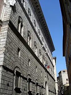The Palazzo Piccolomini, also known as the Palazzo Todeschini Piccolomini is a Renaissance-style palace in the city of Siena, region of Tuscany, Italy. It is located on the Banchi di Sotto, at the corner with Via Rinaldini; uphill and west of the church of San Martino, the Loggia del Papa, and the Palazzo delle Papesse, which also built by a Piccolomini family member. The palace houses the State Archives of Siena.