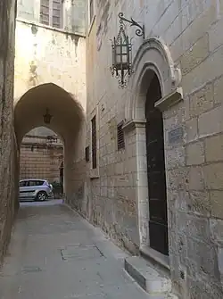 Palazzo Santa Sofia is a palace in Mdina, Malta, located in Villegaignon Street, across the square from the cathedral.[1] Its ground floor was built in 1233, and it is believed to be the oldest surviving building in the city. The upper floor is of a much later construction, being built in the 20th century.