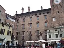 The palace was built in 1227 as the home and offices of the commune government in Mantua. After a fire, the building was reconstructed in Renaissance-style by designs of Luca Fancelli, commissioned in the 15th century by Duke Ludovico Gonzaga. The main facade has a niche with a well-worn 13th-statue said to be of Virgil at his desk, between two columns.[1]