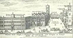 During the 19th century, the palace underwent major renovation by architect Giovanni Tosi, who transformed the previous historical loggia, giving it a neoclassical appearance that it still retains, and arranged some shops inside.[2]