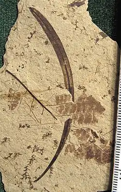 Five species of ferns and fern relatives have been described from the compression biotas and an additional four compression taxa that have been tentatively identified to family or genus. A series of four additional ferns have been described from premineralized specimens in the Princeton Chert and a fifth taxon is identified to genus. Several fern specimens were briefly mentioned from Horsefly but no taxonomic assignment was made due to lack of reproductive vegetation.[20]