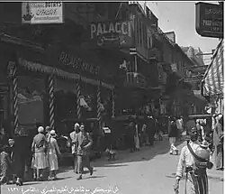 In 1897, Palacci brothers Vita, Henri, and family established the Palacci[37] (Arabic: Balaatshi) department store.[15][38] In 1904, the company's name was Palacci Menasce et Fils.[39] Shortly thereafter, it had become Palacci Fils, Haim et Cie,[40] located on Muski street near the old Opera House.[38] By 1907, Vita Palacci had become head of the store.[41] Also in 1907, newspapers mentions "Mr. Vita Pallacci, the distinguished chief of the house of Palacci Pils, Halm and Co., which is well known in Europe and America" as president of the "Ahemia Society,"[42][43] and again in 1908[44] By 1909, the Palacci had partnered with A. Hayam,[38] and the store employed 20 office clerks and more than 100–120 sales staff.[38][45] In 1910, "Albert Palacci & Co." appears as a Cairo firm interested in trading in silk.[46] At an unclear date, "Palacci, Menasce & Co." are recorded as having stores in Cairo, Tanta, and Mansoura.[47]