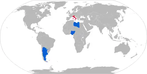 Libya was the first country outside Italy to adopt the Palmaria, initially ordering 210 in 1982.[2][6] Their army's artillery strength in 2004 included 160 Palmaria.[7] Several were destroyed during the First Libyan civil war as a result of multinational military intervention.[8]