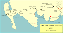 The Portpatrick and Wigtownshire Joint Railway was formed from the amalgamation of two railway companies, the Portpatrick Railway and the Wigtownshire Railway. The line was jointly owned by the Caledonian Railway, Glasgow & South Western Railway, Midland Railway and the London & North Western Railway and was managed by the Portpatrick and Wigtownshire Joint Committee.