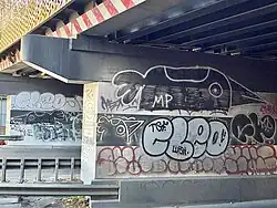 Gibson-Burrell was charged with 50 offences including criminal damage and shop theft, and a subsequent charge of intentionally causing injury was added following allegations Gibson-Burrell stabbed a man using a kitchen knife in 2024.[14][6] Police also sought government assistance with organising a Federal Bureau of Investigation search warrant of Instagram with the goal of identifying Gibson-Burrell as the owner of @goodbirdart.[6] White, the owner of the graffiti paint shop Bodega, located in the suburb of Abbotsford, was charged with a total of 17 offences, including criminal damage.[15] Furthermore, White also had an extensive criminal record for incidents regarding criminal damage and trespass, which was described as an 'international' graffiti spree where several train carriages in San Francisco, New York and Perth were tagged.[16]