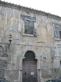 If in 1712 the front of the palace on Piazza San Paolo was probably completed,[10] between July and September 1717 the factory was expanded with Cardinal Pamphilj's purchase of the house of brothers Domenico and Matteo Giannini, adjacent to his property and facing the present Via San Gaspare del Bufalo:[10] in this space the courtyard "of the cavallerizza" was built.[11]