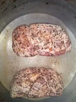 The Pamplona (also referred to as Pamplona de cerdo) is a grilled stuffed-meat dish from Uruguay prepared with chicken,[1][2] and may be prepared with other meats such as pork[3] and beef. It has also become increasingly popular in Argentina.