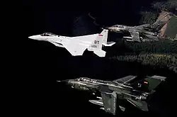 German Tornado aircrew training took place at Holloman Air Force Base in New Mexico, US from January 1996[157] at the Taktische Ausbildungskommando der Luftwaffe USA (TaktAusbKdoLw USA Tactical Training Command of the Luftwaffe USA) which was responsible for training both German F-4 Phantom and Tornado crews. In 1999 the training command was renamed as Fliegerisches Ausbildungszentrum der Luftwaffe (FlgAusbZLw Luftwaffe Training Center). In March 2015, Defence Minister Ursula von der Leyen decided to continue this training in Germany.[158] In September 2017, flight training in Holloman for the Tornado was discontinued and transferred to Taktischen Luftwaffengeschwader 51 in Jagel with the US location command dissolved in 2019.[159]