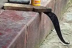 Paniki or Panikhi (Odia- ପନିକି) is a tool with a cutting edge and a wooden footrest,[1] used for chopping vegetables, fish and meat.[2] Panikis are mostly used in Odisha, India.[3] A variation of the tool, known as Boti (Bengali- বটি), is found in the Indian states of West Bengal and Tripura, as well as in Bangladesh. Various tribes of Odisha used for different purposes. The tribe members of the Mutkia Kondha worship paniki as deity and do not keep their feet with their feet. They rather use a special type of paniki with a wooden stand.[4] Panikis of ancient times show engraving of cultural and religious elements.[5] Traditionally in rural Odisha, panikis are made from wrought iron or recycled steel by the blacksmith.[6]