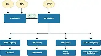 - ^ a b Choueiri TK, Vaishampayan U, Rosenberg JE, Logan TF, Harzstark AL, Bukowski RM, et al. (January 2013). "Phase II and biomarker study of the dual MET/VEGFR2 inhibitor foretinib in patients with papillary renal cell carcinoma". Journal of Clinical Oncology. 31 (2): 181–6. doi:10.1200/JCO.2012.43.3383. PMC 3532390. PMID 23213094.