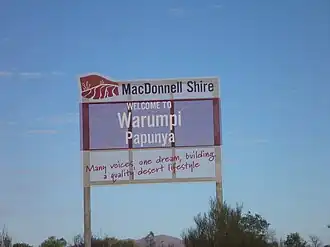 Papunya (Pintupi-Luritja: Warumpi)[2] is a small Indigenous Australian community roughly 240 kilometres (150 mi) northwest of Alice Springs (Mparntwe) in the Northern Territory, Australia. It is known as an important centre for Contemporary Indigenous Australian art, in particular the style created by the Papunya Tula artists in the 1970s, referred to colloquially as dot painting. Its population in 2016 was 404.