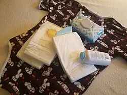 Strictly speaking, people with a diaper fetish may be aroused by the idea of wearing diapers as an adult, and may not participate in any form of ageplay.[21] Practically speaking, there can be a great deal of variation and overlap between paraphilic infantilisms and diaper fetishists, and the term "AB/DL" can be used as a catch-all term which includes a broad spectrum of related kinks and behaviors.[9] As diapers are a commonly used a prop for "adult baby" role-play, diaper fetishism may be considered a potential component of paraphilic infantilism.[10]