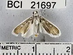 - ^ Nuss, Matthias; Landry, Bernard; Mally, Richard; Vegliante, Francesca; Tränkner, Andreas; Bauer, Franziska; Hayden, James; Segerer, Andreas; Schouten, Rob; Li, Houhun; Trofimova, Tatiana; Solis, M. Alma; De Prins, Jurate & Speidel, Wolfgang (2003–2017). "GlobIZ search". Global Information System on Pyraloidea. Retrieved June 6, 2018.