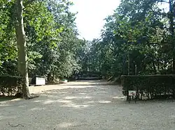 When the Concordat of 1801 was signed, the bishop recovered his palace, but not the gardens which remained the property of the city. Source of long conflicts, the only access to the garden remained the bishop's palace.[16] The city opened an access by the rue de Fougères, but the bishop said "he is embarrassed by the visitors, who passed right by his windows".[16] In 1812, an access leading to the rue de la Palestine made it possible to get around the problem. From 1811 to 1814, a legal battle ensued between the bishopric, which wanted to recover its old property, and the city of Rennes, which wanted to keep it. In 1814, the count of Ferrières, extraordinary commissioner sent to Brittany by Louis XVIII, decides that the bishop can recover his old pleasure garden: the public promenade is thereby shortened.[18]