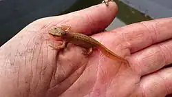 Amphibians like the common midwife toad and the salamander live at the puddles in the park.