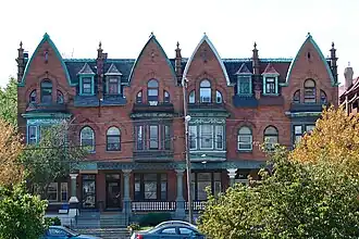 Much of the Parkside neighborhood was built during the 1876 Centennial Exhibition. It is a National Register of Historic Places Historic District with many examples of Victorian architecture, some well-preserved, others in poor condition. The neighborhood was populated by German Americans, followed by Eastern European Jews, before becoming heavily African American after World War II. (Directly after World War II it was home to many displaced persons from Eastern Europe, which included Latvians.)